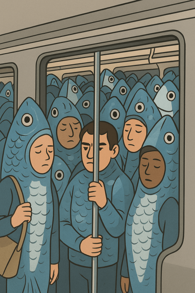 En kyllä itsekään nauti siitä että aina pitää tulla iholle mutta olen oppinut sietämään sitä. Oma fyysisen tilan tarpeeni on ehkä jotain suomalaisen ja espanjalaisen välistä – en hermostu vaikka jonossa takana tuleva hengittää niskaan mutta en kyllä halua tilanteessa olla yhtään pidempään kuin mitä on pakko.