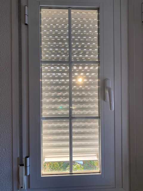 Meillä on nämä joka ikisessä ikkunassa, kodissa yhteensä 20 kpl. Ne lasketaan alas illalla ja nostetaan ylös päivällä, joka ikinen. Kai ne luovat myös jonkinlaista turvaa – asuntomurrothan ovat Espanjassa valitettavan yleisiä.