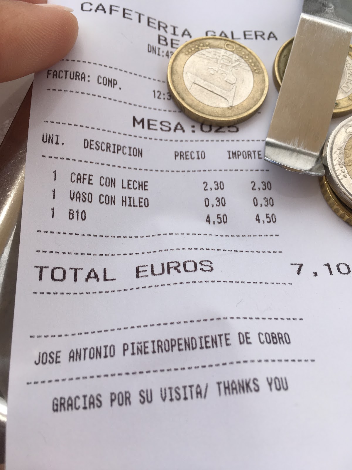 Espanjassa ei kenelläkään ole kiire ravintolassa. Täällä saa siis varautua odottamaan. Ensiksi ehkä sitä, että pääsee sisälle ja saa pöydän. Sitten sitä, että saa ruokalistan. Sitten sitä, että saa tilattua juomat. Sitten niiden juomien saapumista. Sitten sitä, että tarjoilija ottaa ruokatilauksen, minkä jälkeen odotat niitä ruokia. Ja sitten taas odottelet, että tarjoilija tulee jossain vaiheessa keräämään tyhjät astiat. Ja sen jälkeen odottelet, että se tulee kysymään että haluatko jälkiruokaa ja sitten odotat sitä jälkiruokalistaa ja sen jälkeen taas sitä tarjoilijaa, että se tulisi ottamaan sen tilauksen. Ja sitten odotat sitä jälkiruokaa. Ja sen jälkeen sama prosessi kahvin kanssa. Ja sitten vielä odottelet sitä laskua. Ja niitä vaihtorahoja.
