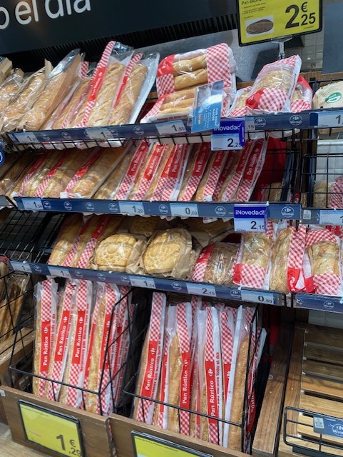 Espanjalaisten leipähyllyjen valikoima on kuitenkin edelleen aika yksitoikkoista – pääasiassa valkoista leipää eri muodoissa.
