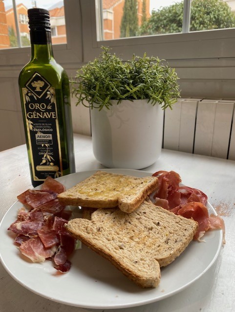 Leivän kanssa ei käytetä voita eikä leivän päälle laiteta juustoa ja leikkeleitä. Aamiaisella espanjalainen syö leipänsä paahdettuna ja päälle sipaistaan valkosipulia, reilu loraus hyvälaatuista neitsytoliiviöljyä ja ehkä tomaattia ja jamon serranoa eli ilmakuivattua kinkkua.