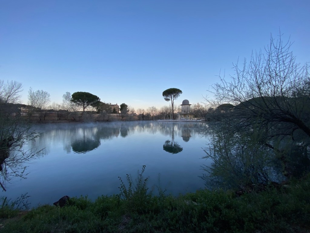 Lopulta löysin mielenkiintoisen, aika tuntemattoman kohteen vajaan 2 tunnin ajomatkan päässä. Pieni kylä nimeltä Alhama de Aragon, jossa on sellainen erikoisuus kuin lago termal eli järvi johon vesi tulee ns. kuumasta maanalaisesta lähteestä. Järven ympärille on rakennettu neljä kylpylähotellia, joiden kylpylöissä tietysti käytetään samaa lämmintä mineraalipitoista lähdevettä. Vastaavanlaisia kylpylöitä eli balnearioita on Espanjassa itse asiassa valtava määrä mutta erikoiseksi tuon paikan tekee ehdottomasti tuo järvi.