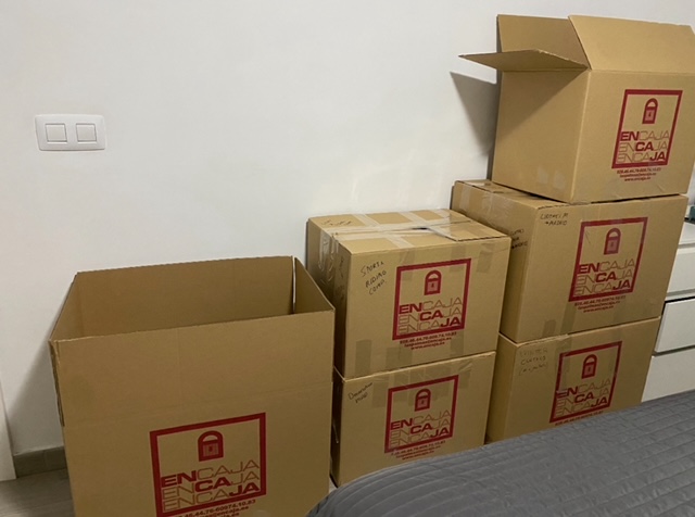 Koti pakattiin muuttokuntoon parissa viikossa – mukaan otettiin vain henkilökohtainen omaisuus eli asunnon myimme huonekalujen kera. Tämä siitä syystä että asunnon ostajat toivoivat näin ja tämä sopi myös meille. Olimme ostaneet huonekalut nimenomaan tuota asuntoa varten emmekä välttämättä haluaisi samoja seuraavaan kotiin. Muutto tuli myös merkittävästi edullisemmaksi ilman huonekaluja – pitihän koko muuttokuorma + meidän kaksi autoa siirtää Kanarialta Madridiin.