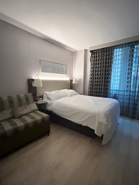 Loppujen lopuksi päädyimme Hilton-ketjun Home2Suites by Hilton New York Times Square-hotelliin. Maksoimme meidän 3 hengen huoneesta 1200 euroa viideltä yöltä, sisältäen verot ja kaikki mahdolliset lisämaksut. Kallista oli mutta onneksi emme tällä kertaa joutuneet pettymään. Etukäteen tuli luettua paljon negatiivista palautetta (ei pelkästään tuosta hotellista vaan yleisesti lähes kaikista) mutta meillä ei kyllä ole hotellista juurikaan negatiivista sanottavaa. Hotelli ei ollut halpa mutta ei myöskään kalleimmasta päästä.