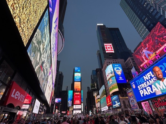 1.päivä: Times Square ja sen lähellä olevat alueet sekä nähtävyydet kuten Rockefeller Center ja Grand Central Terminal-keskusasema. Illalla teimme 2 tunnin risteilyn auringonlaskun aikaan, jonka aikana näimme Brooklyn Bridge-sillan, Manhattanin silhuetin joelta käsin sekä Vapauden patsaan. Palasimmme takaisin pimeällä joten pääsimme myös ihailemaan kaupungin valoja pimeään aikaan.