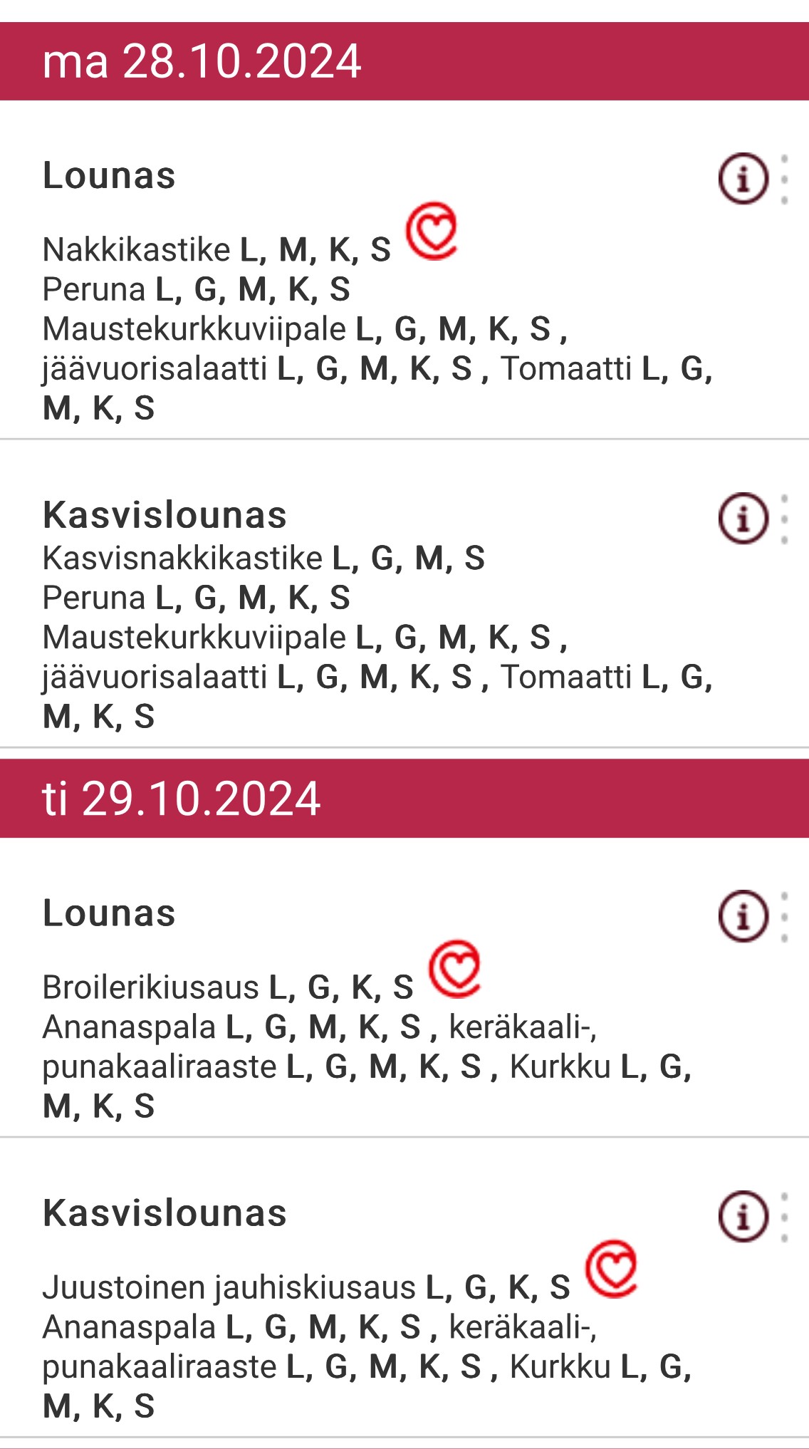 Vilkaisin tietysti entisen kotikaupunkini Porin ruokalistoja kouluille ja aika tutun näköisiä ruokia sieltä löytyi ja aika perusruokaa. Nakkikastiketta, pinaattiohukaisia, hernekeittoa, broilerkastiketta, jauhelihakeittoa, broilerkiusausta jne. Mitään tarkempia tietoja ravintosisällöstä ei kuitenkaan löytynyt.