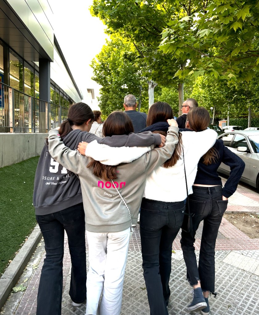 Tuossa vaiheessa puhelimet toimivat vielä jotenkin ja saimme tyttäreltä SMS-viestin että pitäisi tulla hakemaan koulusta. WhatsApp-ei enää toiminut. Lähdimme siis kohti Madridia ja tunnin ajomatkan sijasta matkaan meni kaksi tuntia. Mutta eihän lapsilla koulussa ollut mitään hätää – siellä oli hommat järjestetty tosi hienosti. He olivat syöneet lounaankin ihan normaalisti- tosin se oli syöty muoviaterimilla paperilautasilta. Mutta koska tilanne oli sen verran epävarma niin koulupäivä päätettiin keskeyttää.