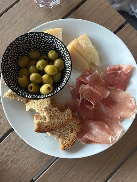 Ruokaa kannattaa pitää varastossa – siis sellaista mikä ei mene pilalle nopeasti ja mikä ei vaadi lämmitystä. Jamon serrano ja kypsät juustot säilyvät aika hyvin ilman kylmää. Pitkään säilyviä leipätuotteita (tortillat, näkkileivät ja muut vastaavat, voileipäkeksit, korput), säilykkeitä, pähkinöitä, marmeladia/nutellaa/hilloa, muroja, mysli- ja proteiinipatukoita jne. Mitä kaikkea nyt sattuu keksimään. Tällä kertaa varastoihin ei tarvinut tukeutua mutta kyllä tuollainen perussetti on hyvä aina olla olemassa.