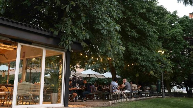 Madridilaisten ravintoloiden ja kahviloiden terassit ovat kesällä kuin pieniä keitaita keskellä erämaata. Monilla sisä-terasseilla on viilennys ja myös puut tuovat mukavaa varjoa ja suojaa.